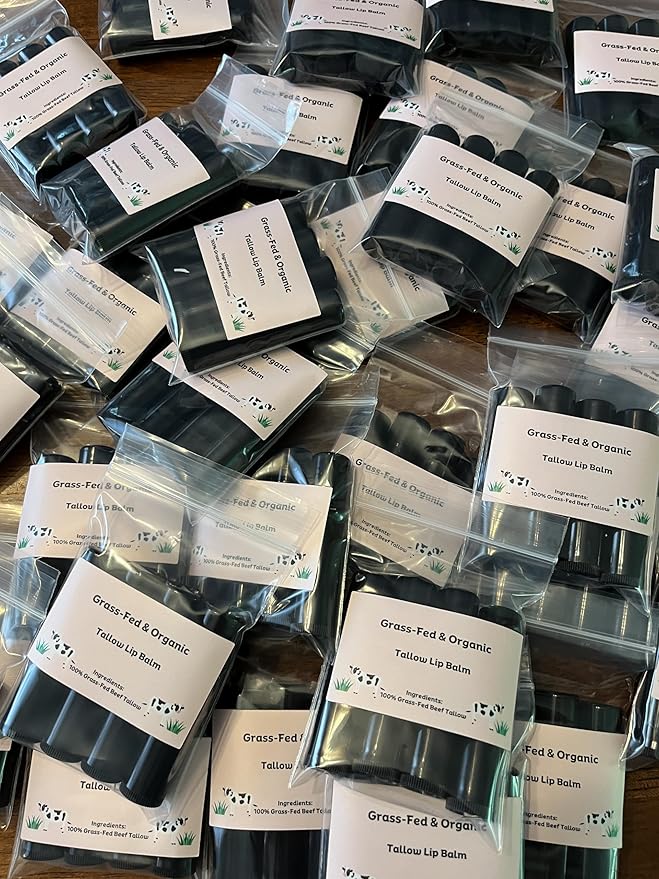 Beef Tallow Lip Balm 100% Grass Fed & Organic, Animal Based Skincare, Carnivore Beauty, Natural Hydrating (4 Pack), Black