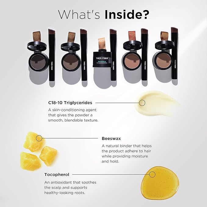 - INSTANTLY CONCEALS THIN HAIRLINE AND COVERS GRAY ROOTS: The THICK FIBER Root Touch Up Powder is your secret weapon for effortlessly concealing thin hairlines and those unwelcome gray roots. With a few quick strokes, watch as the hair concealer powder works its magic, providing you with instant coverage that camouflages imperfections and boosts your hairline's fullness.