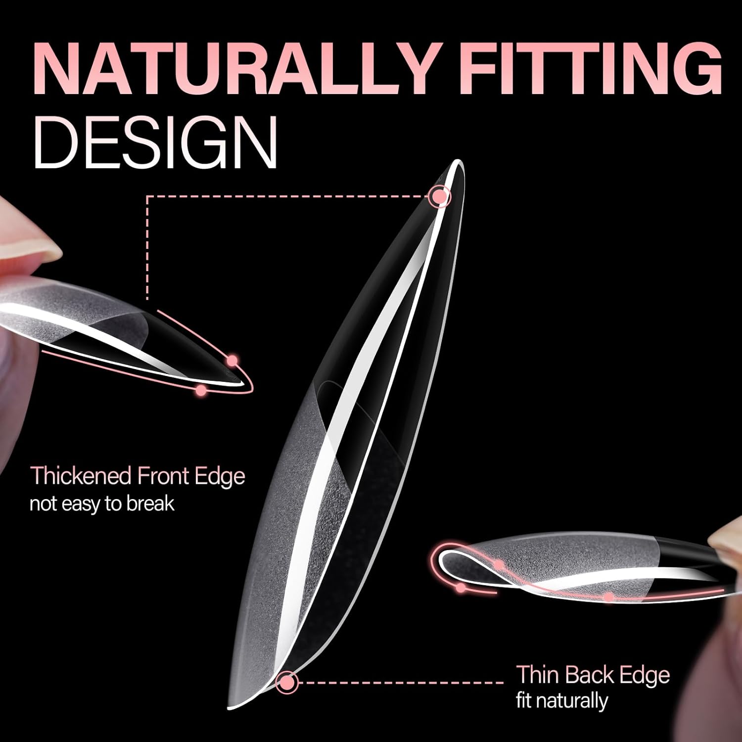 AILLSA Medium Almond Nail Tips Pre-Shaped Acrylic Nails Tips Half Matte Full Cover Tips Clear Gelly Press on Flase Nail Tips for Extension Nail Manicure Home DIY 216PCS 12Sizes