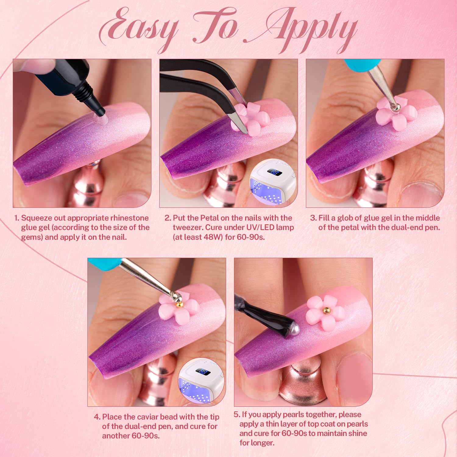 - ✿ Shining Nail Rhinestones Kit -- The 2-4mm nail rhinestones, ABS pearls and tiny gemstones are wildcard to add glitz to most of your stylish nail designs. Besides, the pickup pen and tweezers will be a good helper for applying your big and small embellishments.