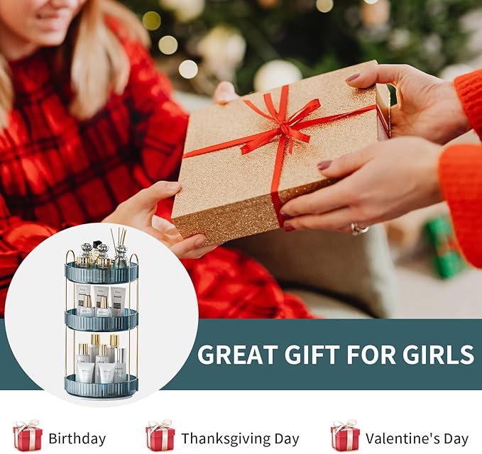 360° Rotating Makeup Organizer, Bathroom Organizers and Storage Holder Rack, Large Capacity Vanity Shelf Countertop, Fits Cosmetics, Perfume, Skin Care(Blue, 3 Tiers)