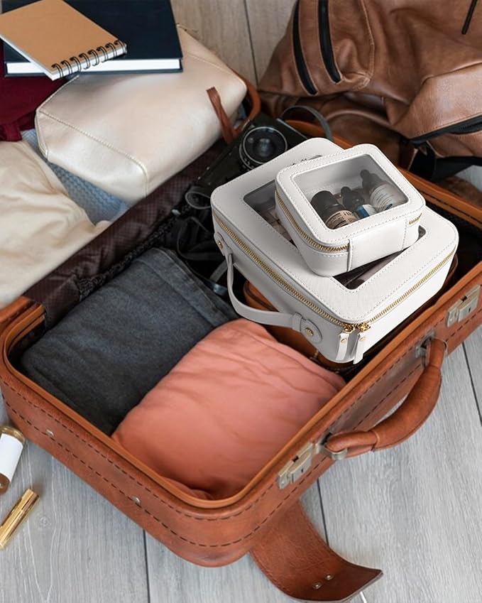 • Clear Design: Our clear toiletry bag set is sleek and minimalistic look for your makeup accessories collection. And is designed with a clear PVC window,all items are clear at a glance, and you can quickly choose the cosmetics you need. Large: 9.44“ x 6.1” x 2.7”, Mini: 5'' x 4.7'' x 2''