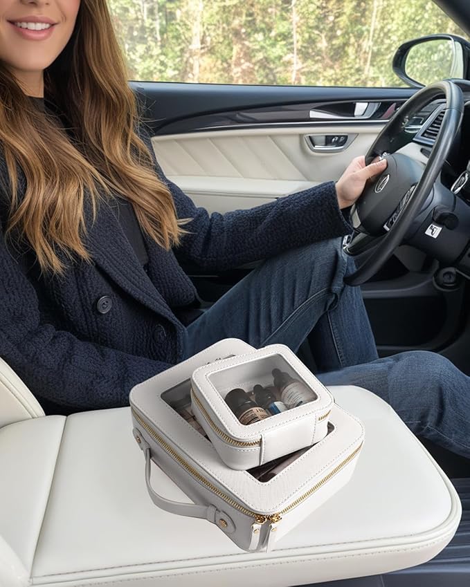 • Car Must Have Essential: The car organizer is roomy to store your makeup, makeup brushes, lipstick, cosmetics, foundation, skin care, cables, chargersor and other items. It can be a good car accessory fits in the center console or other parts of your car