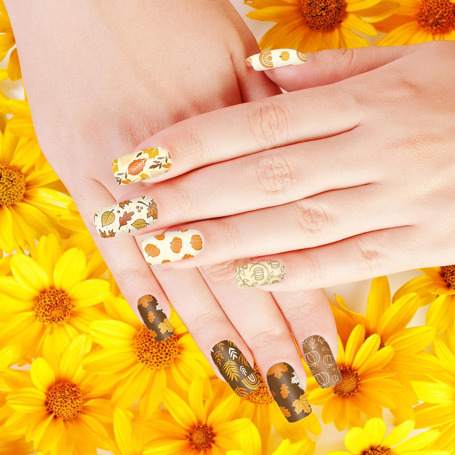 2 Sheet Fall Thanksgiving Nail Art Stamping Plate Kit Assorted Pumpkins Maple Leaves Autumn Blessing Collection Nail Art Plate for Holiday DIY Print Manicure Salon, 5.7 x 3.7inch