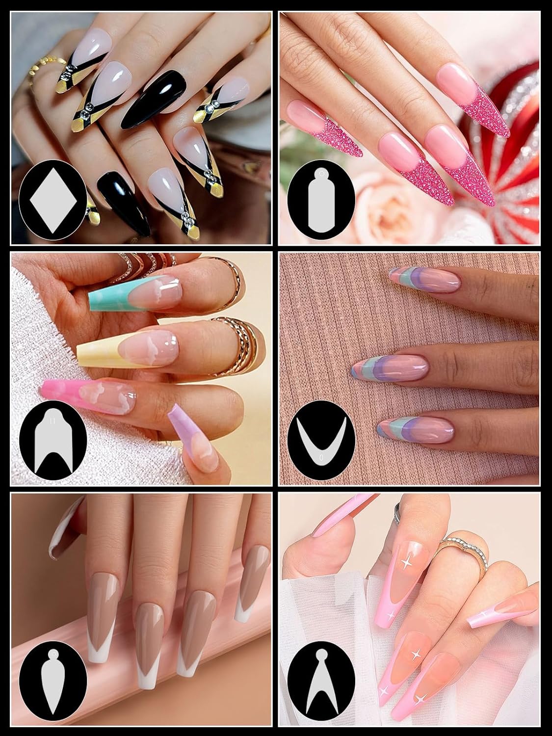 - Easy Application: These duet system nails for french manicure come in 18 shapes and 1 sticker comes in various sizes. The stickers adhere to the nail, allowing for seamless application of poly nail glue, solid builder nail gel or gel polish for a flawless French tip design.