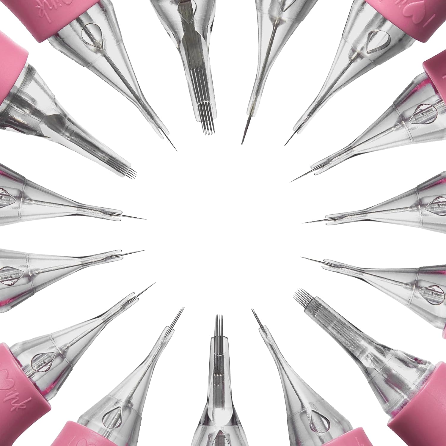 - SUITABLE FOR ALL SKIN TYPES: The collection contains cartridge needles that work well on delicate, sensitive, and mature skin. These needles can be used on the brows, eyeliner, lips, areolas, and more. The brush-like needles are flexible yet gentle to provide maximum ink deposit with minimal impact on your client’s skin.