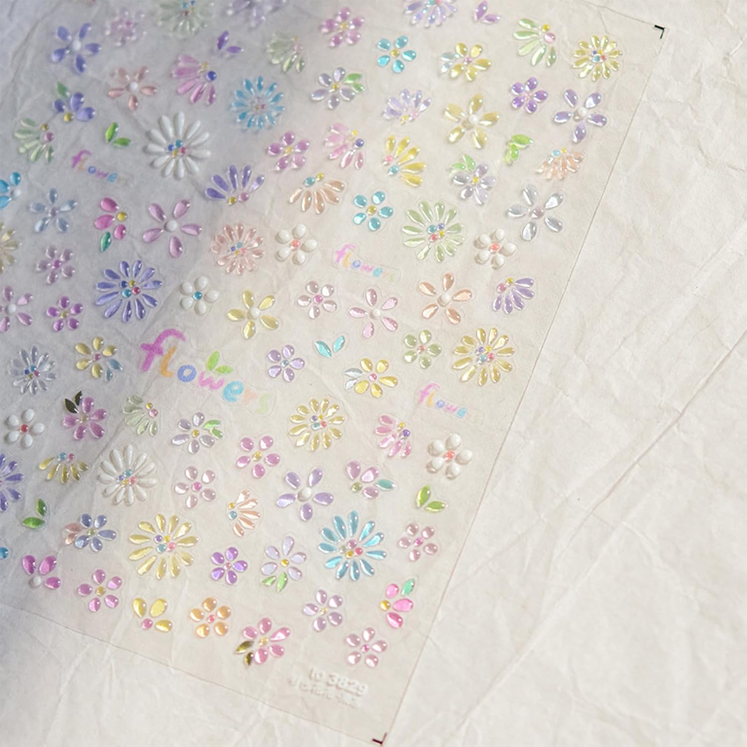 5D Flower Nail Art Stickers,Embossed Self-Adhesive Colorful Floral Nail Decals Cute Daisy Small Flower Floral Nail Art Supplies Summer Nail Design for Women and Girls DIY Manicure Decoration