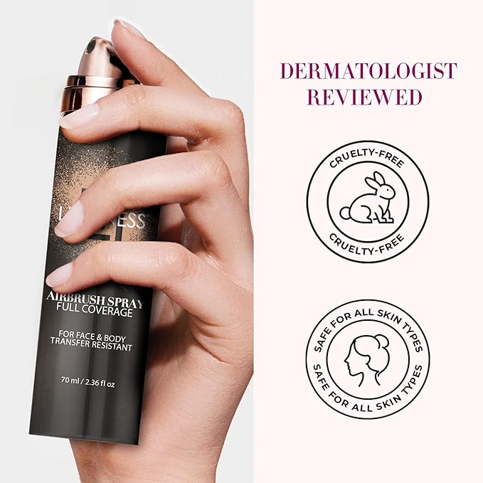 - Full Coverage Airbrush Finish: The LUMINESS Airbrush Spray Full Coverage Foundation delivers lightweight, buildable coverage for face and body, effortlessly concealing imperfections and providing a natural, airbrushed finish that lasts all day. 2.36 fl oz. Shade 150 – Deep Rich