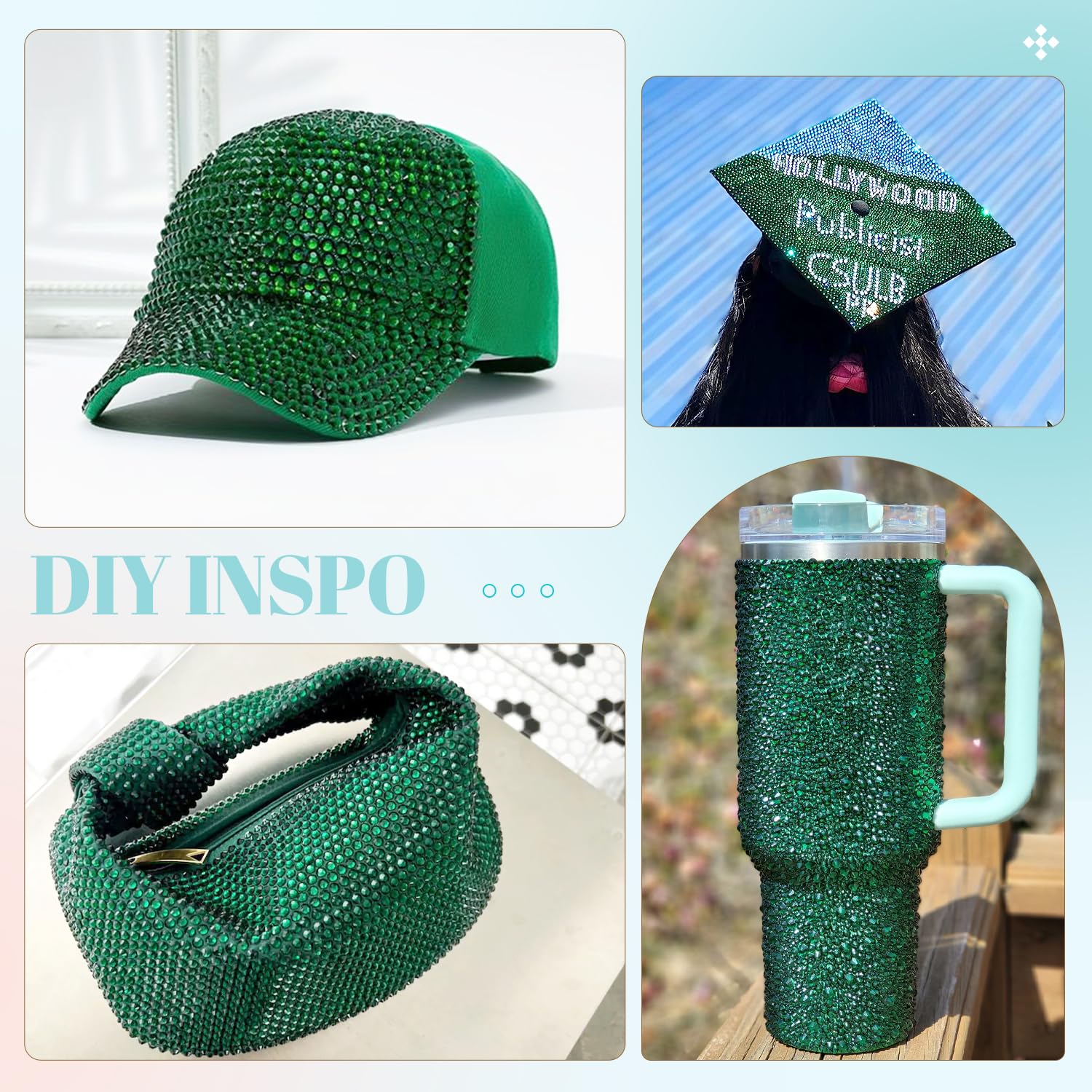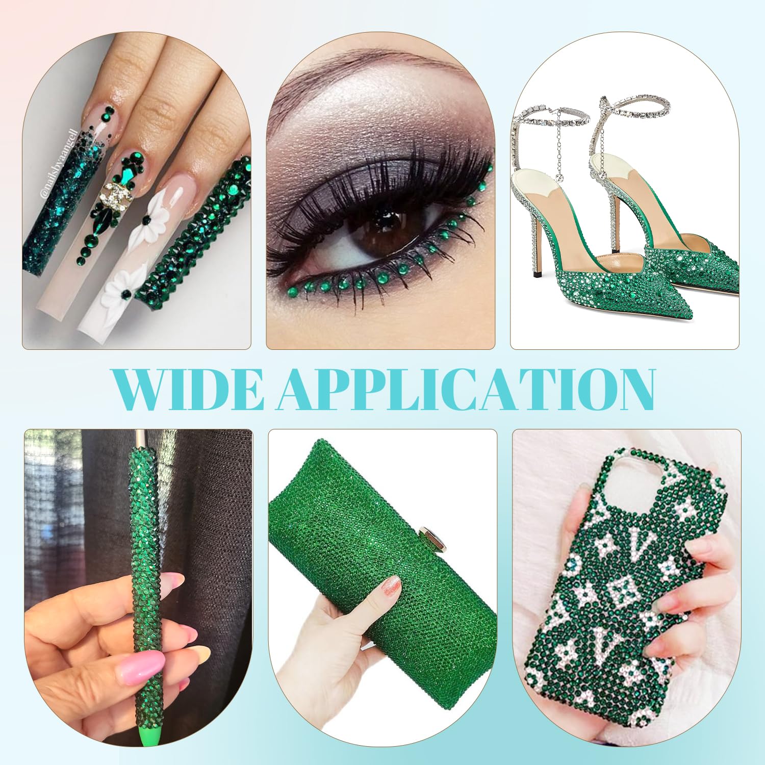 6100Pcs Resin Rhinestones for Crafting with 2Pcs 10ml B7000 Jewelry Glue, 1 Box Flatback Crystals Diamond (Emerald Green) for Bedazzling Crafts DIY Nail Art Non Hotfix Gems for Clothing Shoes