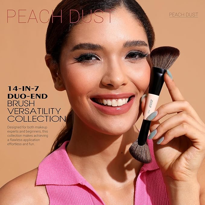 Jessup Makeup Brushes Set 7pcs Double Sided Makeup Brushes for Foundation Concealer Blush Eyeshadow Contour Bronzer Powder Blending Eyebrow Eyeliner, Cruelty-Free Make up Brushes Peach Dust T600