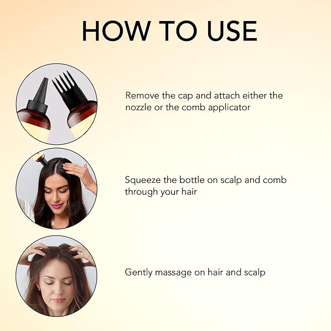 - Nozzle & Comb Applicator: The Rosemary Coconut Oil for hair growth comes with hair oil applicators like nozzle and comb to evenly distribute oil and smoothen knots & frizzes, making the application process effortless