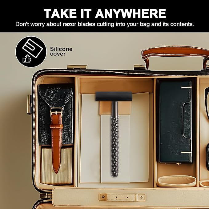 - Versatile Accessories for Both Home & Travel: Complete with a handy tortoise shell-inspired stand, a protective silicone cover for the blade, and a generous supply of 10 replacement blades, this set is perfectly suited for both daily use at home and convenient travel. The compact design and lightweight materials make it easy to pack, ensuring you maintain your grooming routine wherever life takes you.