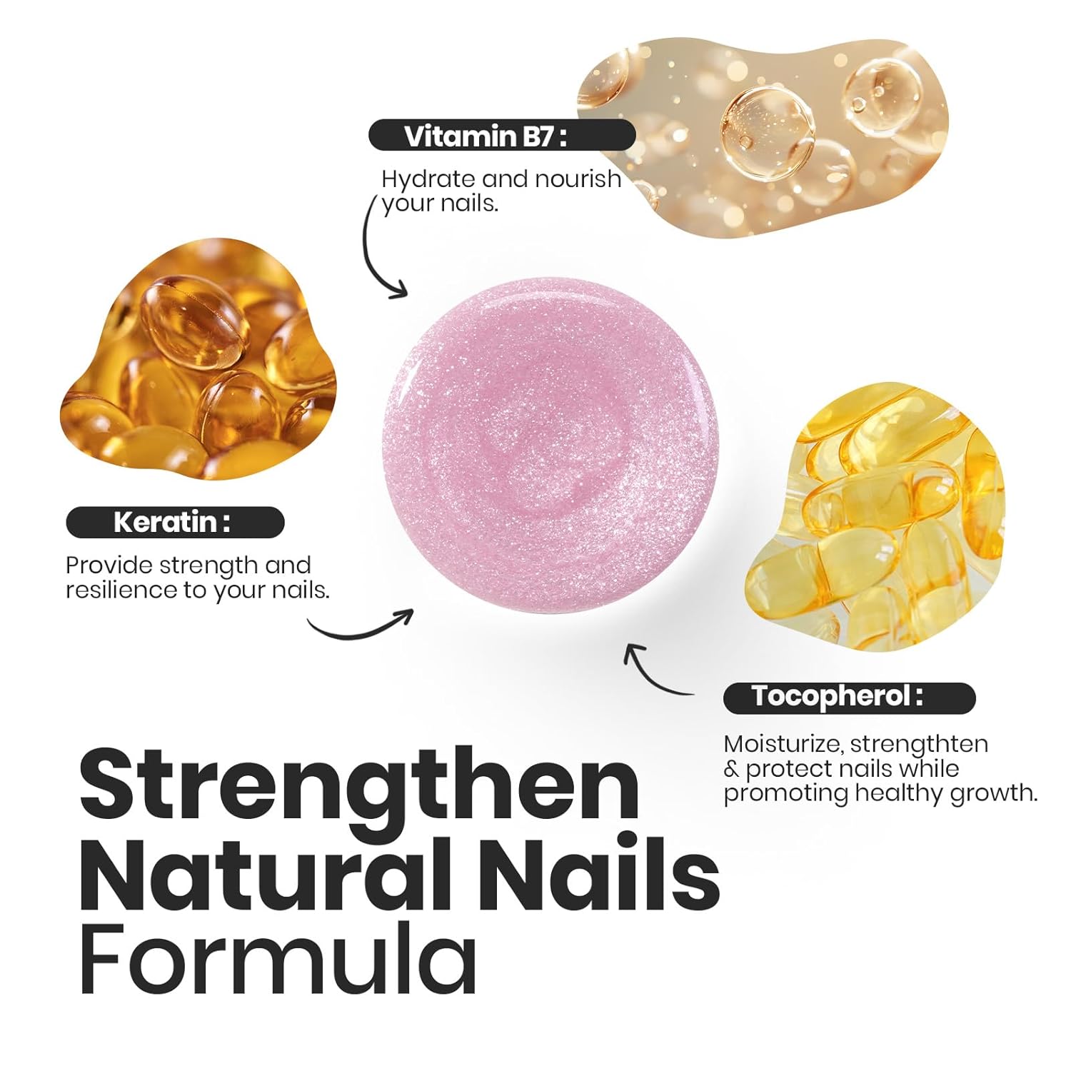 - Nail-Nourishing Formula: Prioritize beauty and health with our nail polish, enriched with keratin, vitamin B (biotin), and tocopherol (vitamin E). Keratin strengthens nails, reducing preakage; biotin promotes growth, while vitamin E protects and speeds up recovery. Regular use builds thicker, stronger, and healthier nails, creating a resilient base for vibrant colors.