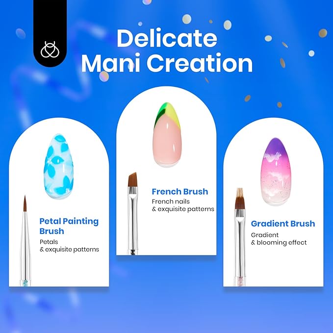 - Double-Headed Design: Each brush features a double-headed design, allowing you to complete all nail art steps with just one brush, eliminating the need to switch mid-process. With oval, flat, dot, petal, french, and gradient brushes, it meets all your nail art needs, making your creation process more efficient and convenient.
