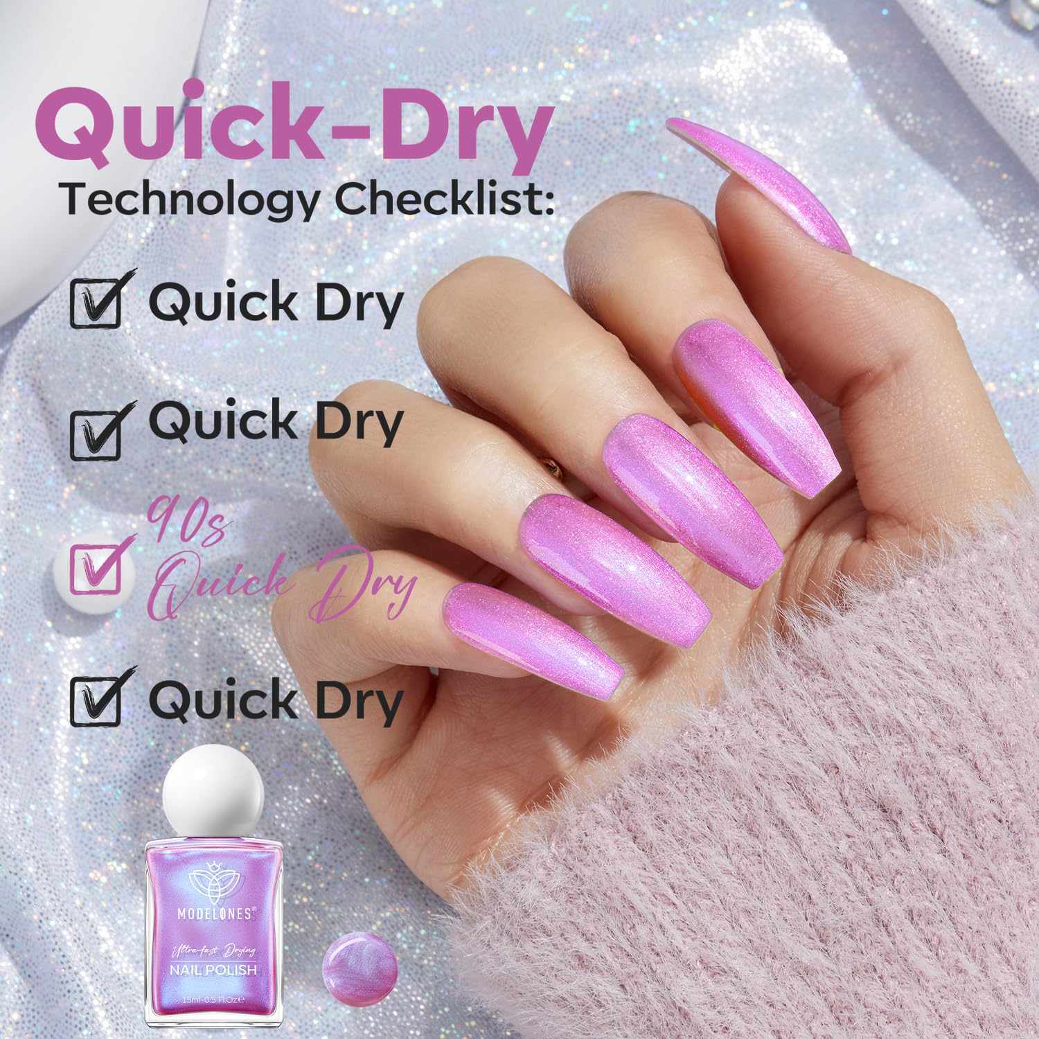 - No U V Needed & Quick Dry: With modelones innovative quick dry formula, say goodbye to long drying times and hello to flawless nails in 90 seconds. This nail lacquer is anti-chip and anti-peel, offering a "no streaks, no hassle" experience and bringing you the long-lasting shine of more than 8 days