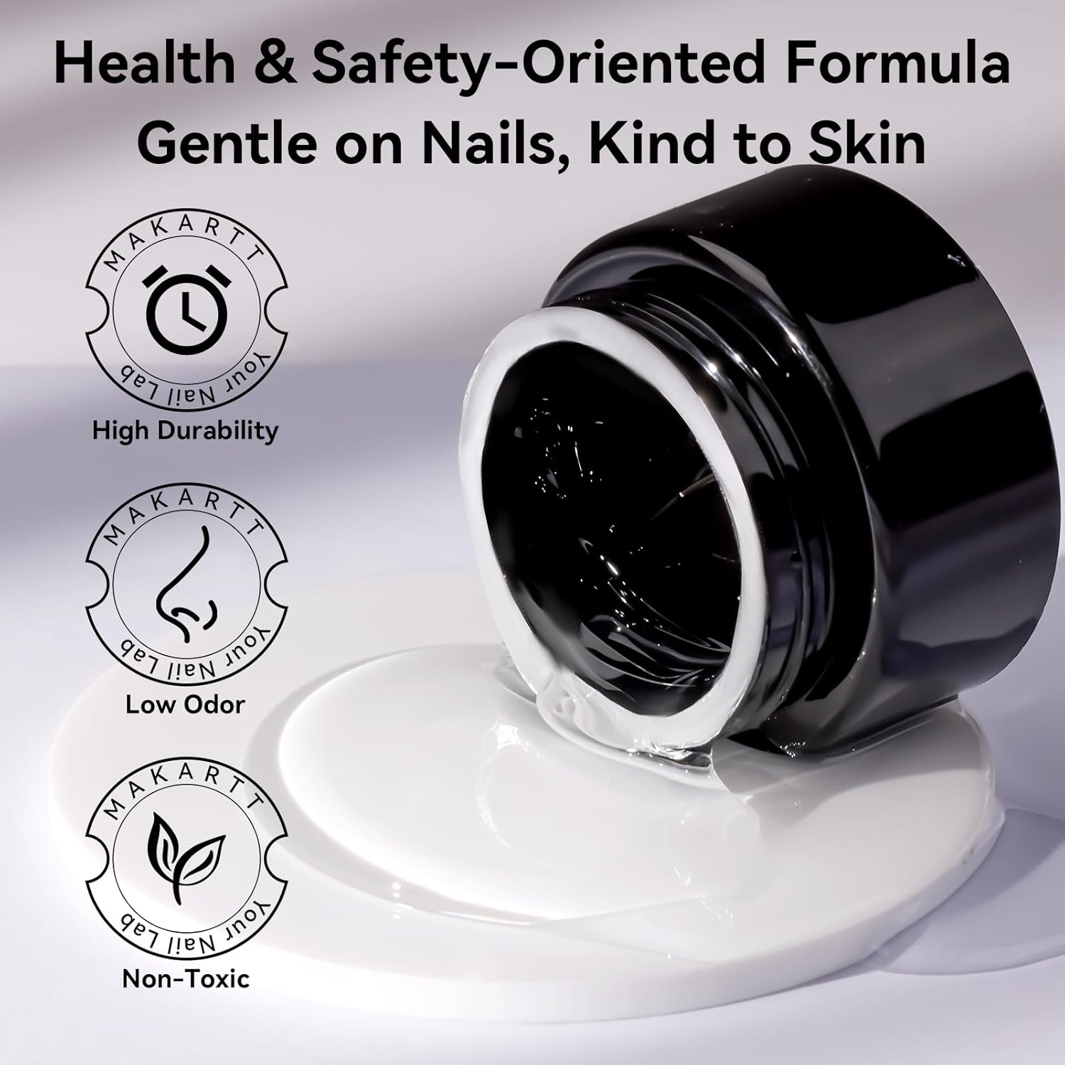 - Health-Focused Formula: Makartt transparent builder hard gel is formulated with gentle, health-conscious ingredients, including innovative secure components and plant extracts. The strengthen nail hard gel lacks harsh chemicals or adhesives that may damage your nails. This gel has minimal odor, causes no discomfort, and resists breaking, peeling, or cracking.This repair nail gel prevents harm and helps protect your natural nails