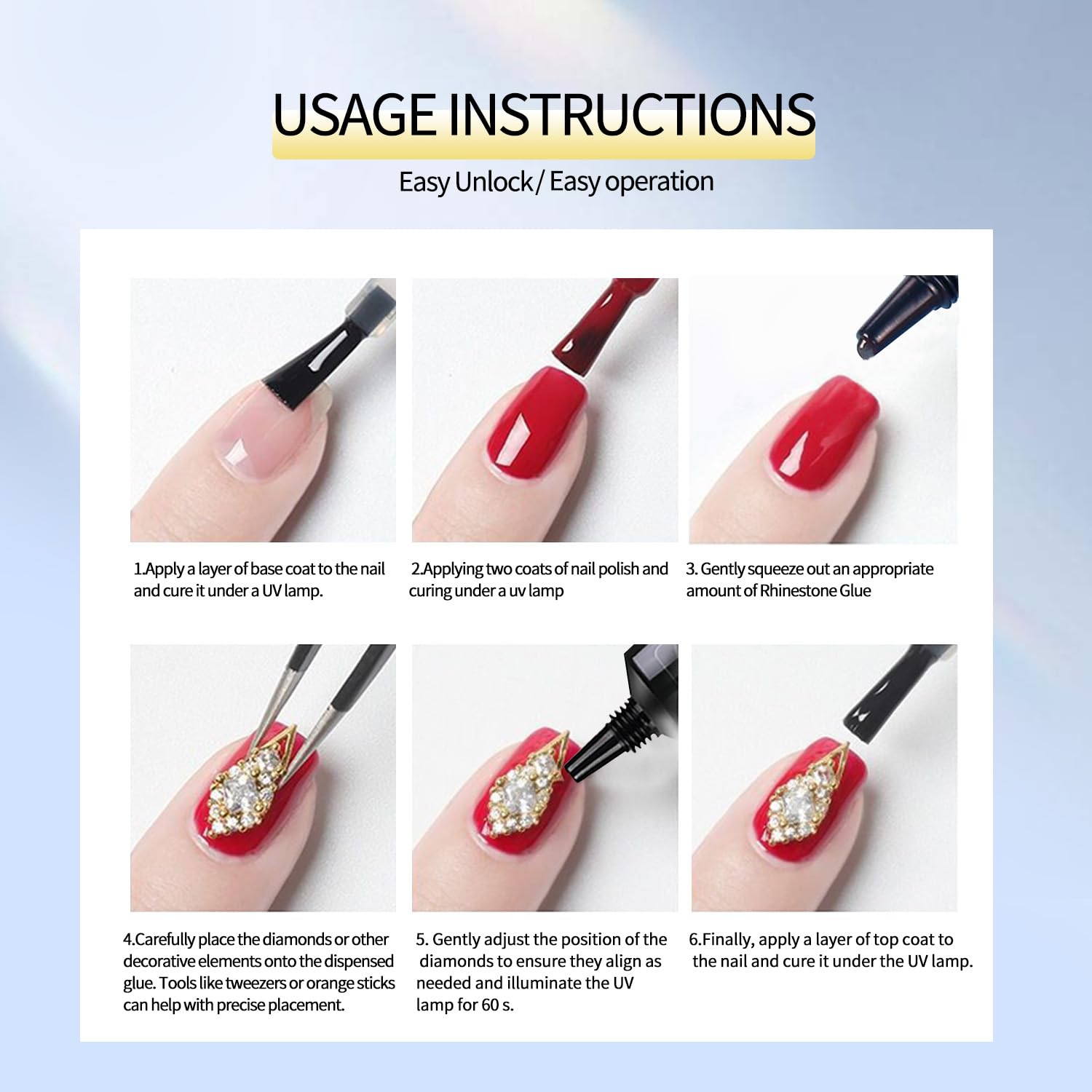 - Long-Lasting Durability: Say goodbye to constantly worrying about your rhinestones falling off.Rhinestone glue gel offers exceptional durability, keeping your nail art looking flawless for a long time. It's perfect for those who lead an active lifestyle or simply want their nail art to stay intact for days.Nail Rhinestone Glue Gel for Nail Art Decorations, Charms, 3D Bling, Gems, Jewel Diamonds