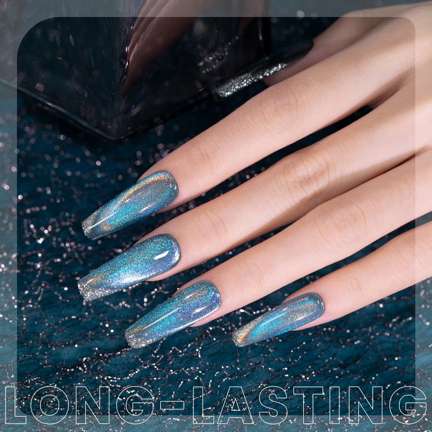 - MULTICHROME VIBRANT COLOR:This cat eye gel polish offers a stunning multi-color glitter effect that transforms your nails into a dazzling masterpiece, perfect for any occasion,create an optical nail lesions that move with every angle