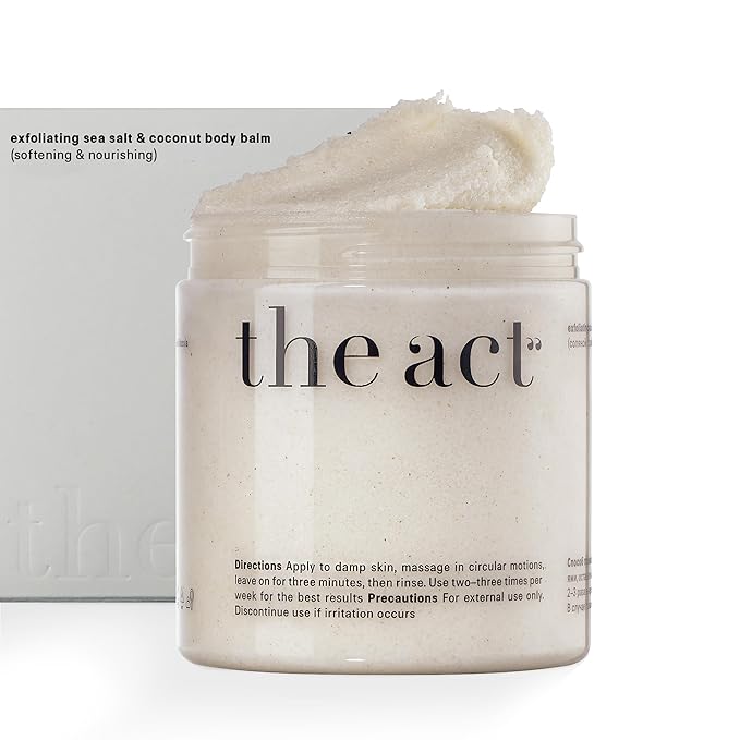 - 🥥 Natural Coconut Body Scrub: The act exfoliating scrub features only natural ingredients, including coconut shavings and fine sea salt, which effectively remove dead skin cells, unclog pores, and facilitate the deep penetration of nourishing components.