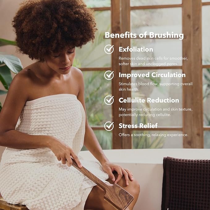 - π§ ELIMINATE DRY SKIN: Easily remove dead skin and encourage skin renewal with this exfoliating brush. Use in upward strokes to lift dirt and dry skin cells, revealing smooth, refreshed skin. It also doubles as a cellulite and lymphatic scrub, helping to reduce the look of cellulite and bumps for a smoother appearance.