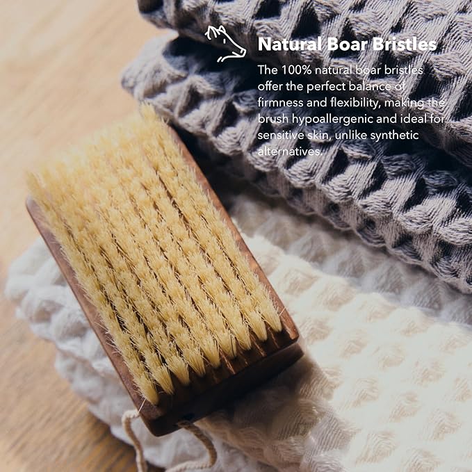 - π§ββοΈ BOAR BRISTLE BRUSH: Experience the perfect blend of firmness and flexibility with this medium-to-hard body brush, made from natural boar bristles. Designed for effective exfoliation and detoxification, it suits all skin types and works beautifully for both wet and dry use, leaving your skin smooth, refreshed, and radiant.