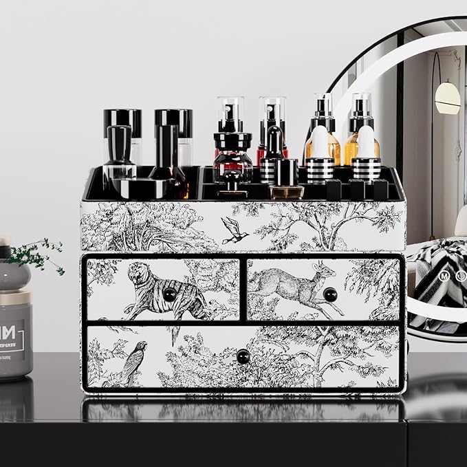 - Unique Gift: The leather makeup organizer for vanity features retro black jungle-themed patterns, with the design distribution unique to each skin care organizer, making every piece one of a kind. It’s a fantastic gift for women on birthdays, Valentine’s Day, Mother's Day, Thanksgiving, Christmas, and other special occasions.