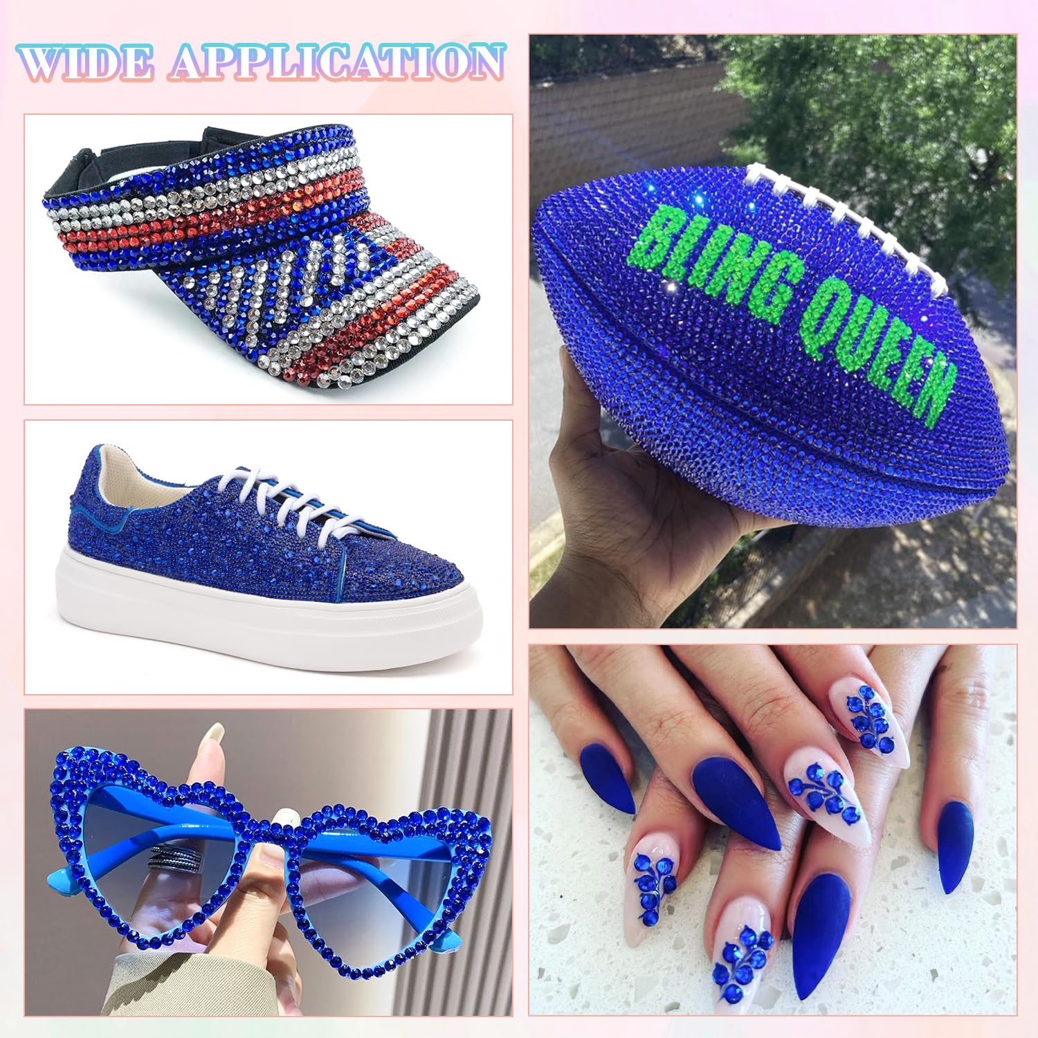 25000Pcs Resin Rhinestones with B7000 Jewelry Glue for Crafting, Royal Blue 2-6mm Non Hotfix Flatback Gems, Bedazzling Crystal for DIY Crafts Clothing Tumblers Mugs Shoes Fabric Decor Nail Art