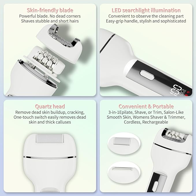 - Epilator for Women, 3 in 1 Hair Removal Epilator, Shaver, Body Electric Trimmer , Feet Callus Remover,IPX5 Waterproof Rechargeable Hair Removal for Women Facial Hair Removal Device, Shaver, Cordless