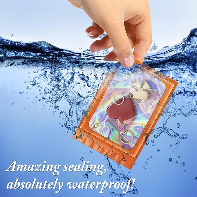 ANZNKU 100 Pcs Smell Proof Mylar Resealable Bags, Holographic Packaging Bags, Resealable Odor Foil Pouch Zip Bag with Clear Window for Food Storage and Lipgloss, Jewelry Lash (Orange, 4.7 x 7.9 Inch)