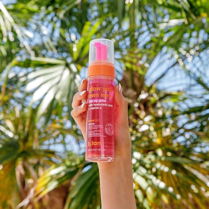 b.tan Clear Self Tanner Foam | Glow Your Own Way - Rinse Free, Best 1 Hour Express Sunless Tanning Water Mousse, Dark, No Transfer, Moisturizing, Face & Body, No Fake Tan Smell, 6.7 Fl oz