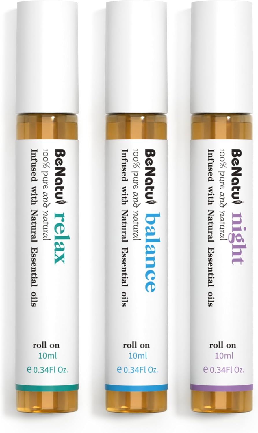 Essential Oil Set (Relax, Night, Balance), Aromatherapy Roll On Blends for Massage, Body Care & Home Use, Great Fragrance Gift for Men & Women Relaxation