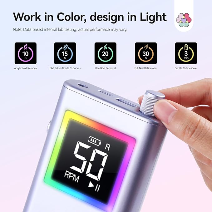 - Pro-Level Efficiency & Comfort: With 50000RPM motor, our Nail Drill removes acrylic nails in 10s. Its stable performance and lightweight aluminum alloy body minimize hand fatigue during busy appointments, resulting in greater client satisfaction due to faster service