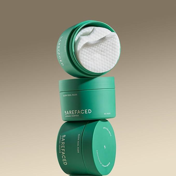 Barefaced Glow Peel Pads (60 Count) - Deep Exfoliating Face & Body Pads with 15% Glycolic Acid, Squalane & Vitamin E - Smooths Texture, Reduces Breakouts & Fine Lines