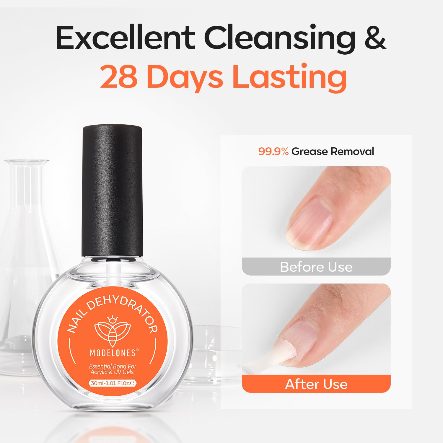 modelones Nail Dehydrator, 30 ml Nail Prep Dehydrator for Press Ons/Acrylic Nails/Gel Polish, Acid Free Natural Prep Dehydrate Acrylic Supplies