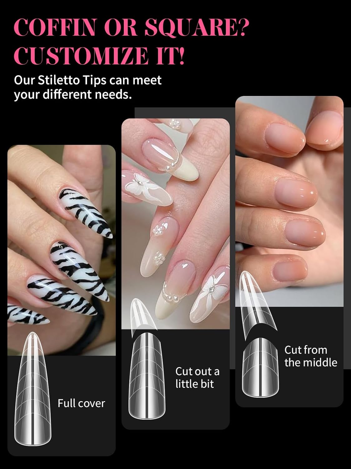 - 【Nail Form Mold with 12 Sizes】Stiletto clear dual forms for poly nail gel offers 12 different nail sizes , and each size of long nail tips is separated by a small grid, a total of 12 grids, so they're easy and convenient to choose the suitable size to meet your nail's need.
