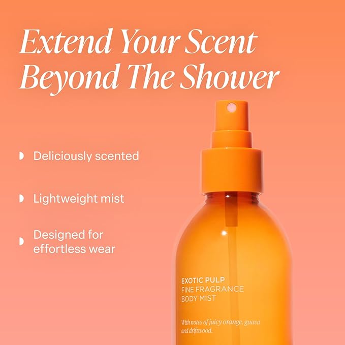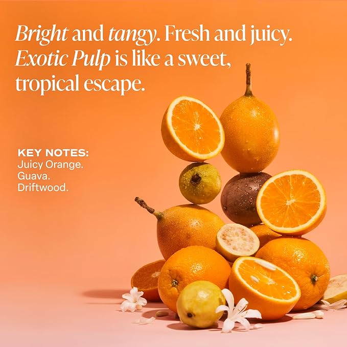 - EXOTIC PULP FRAGRANCE: Orange, Guava, and Passionfruit create a vibrant and tropical explosion of juicy citrus, sun-ripened fruit, and exotic sweetness, creating a scent that feels bright, playful, and full of energy. Exotic Pulp is bright and tangy, like an exciting tropical escape.