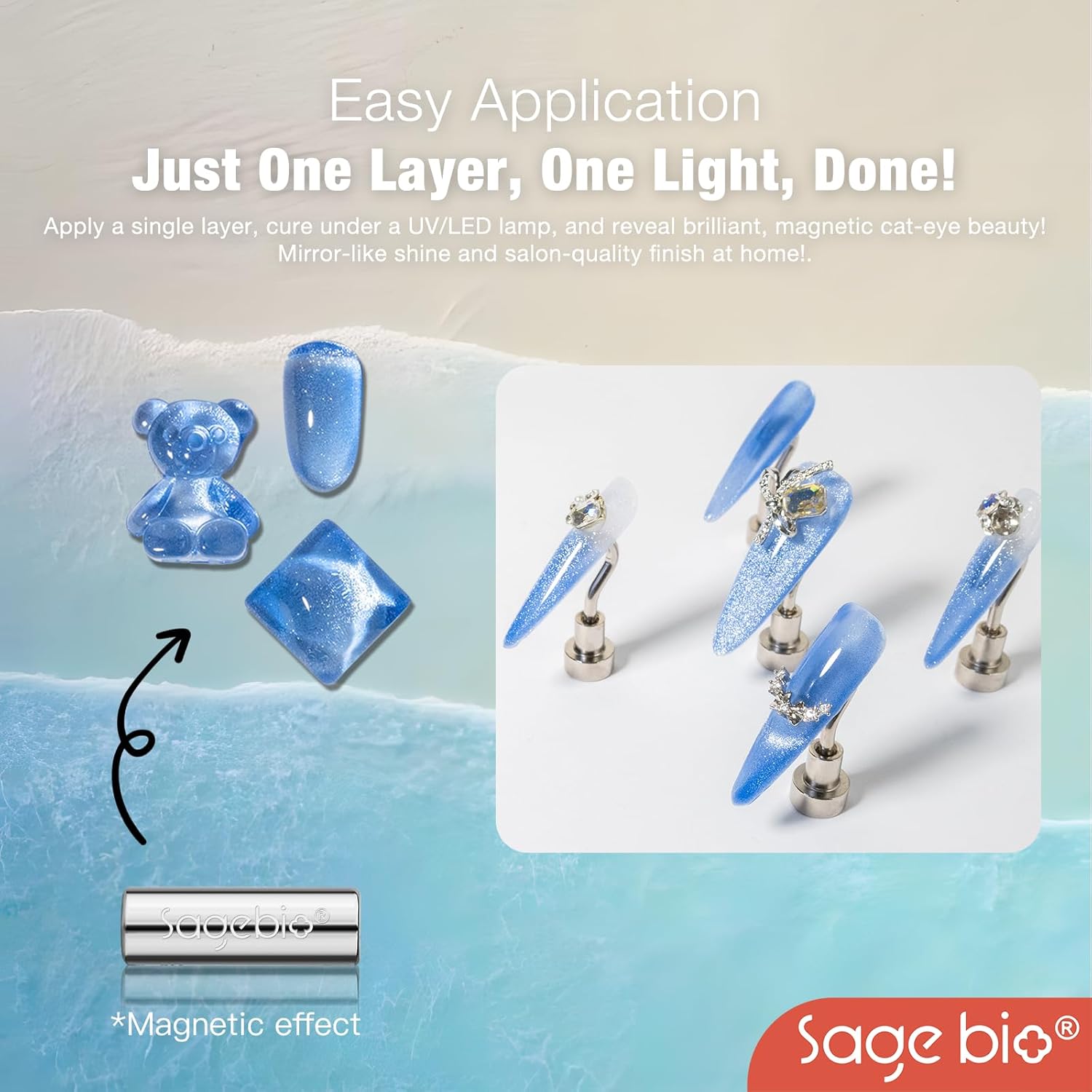 - Multifunctional Formula: SAGEBIO’s Cat Eye Gel Nail Polish combines both the base and color in one easy-to-use formula. No need for additional base or top coats, streamlining your nail art routine.