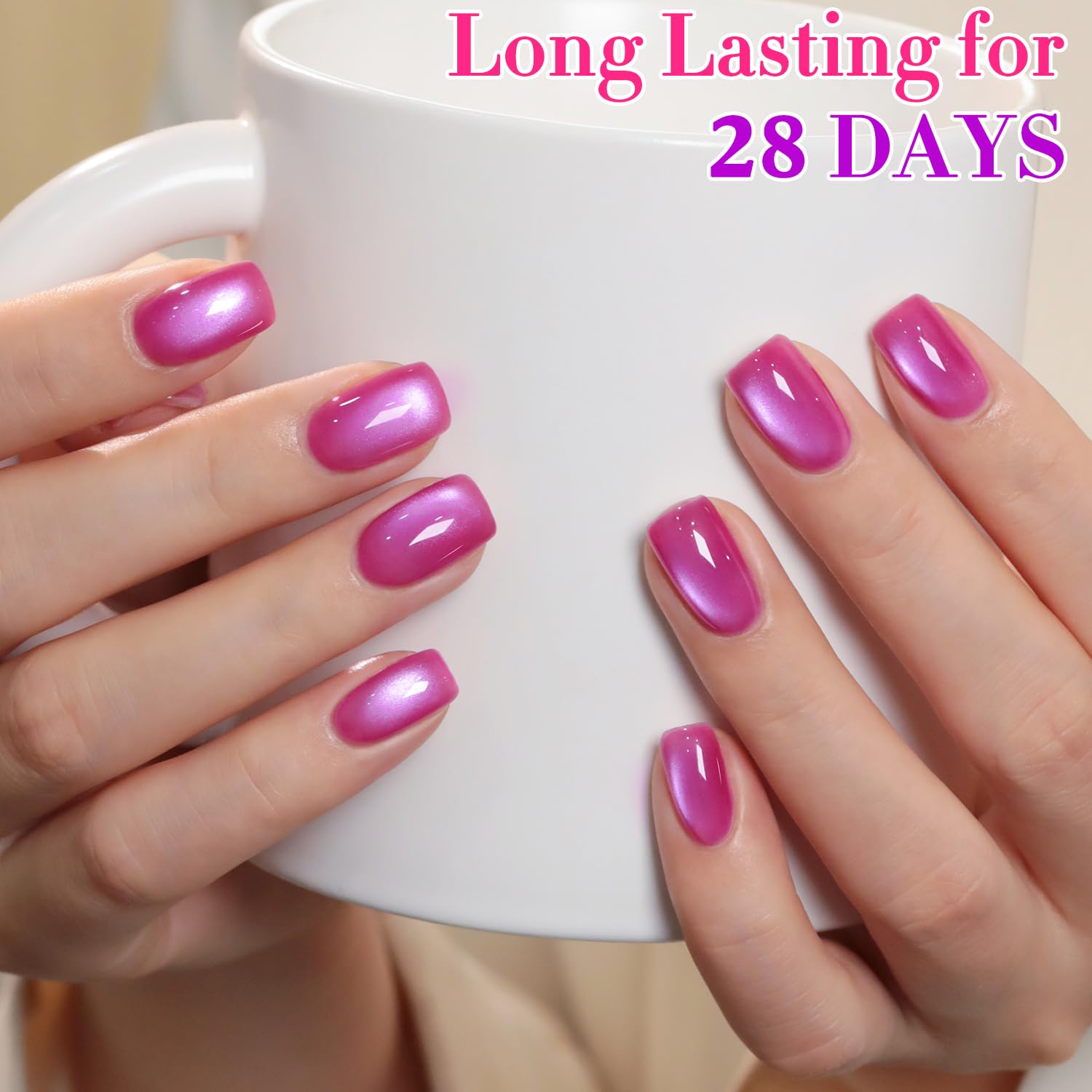 - Cat Eye Gel Nail Polish : Double Rhythm cat eye gel nail polish kit includes 1 color 15ml / 0.5 fl.oz gel nail polish. The cat eye gel can be combined with different bacse colors arbitrarily, you can get different colors nail art.You can use different base coat to creat different sytles.