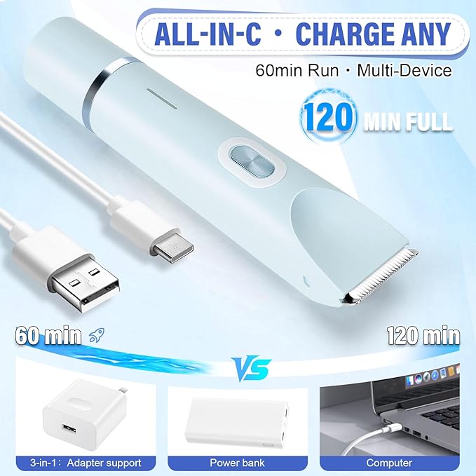- ⚡90-Minute Battery Life, USB Charging - Enjoy an uninterrupted shaving experience with our powerful and long-lasting battery. The bikini trimmer provides up to 90 minutes of cordless use and conveniently charges via USB, allowing you to stay active anytime, anywhere