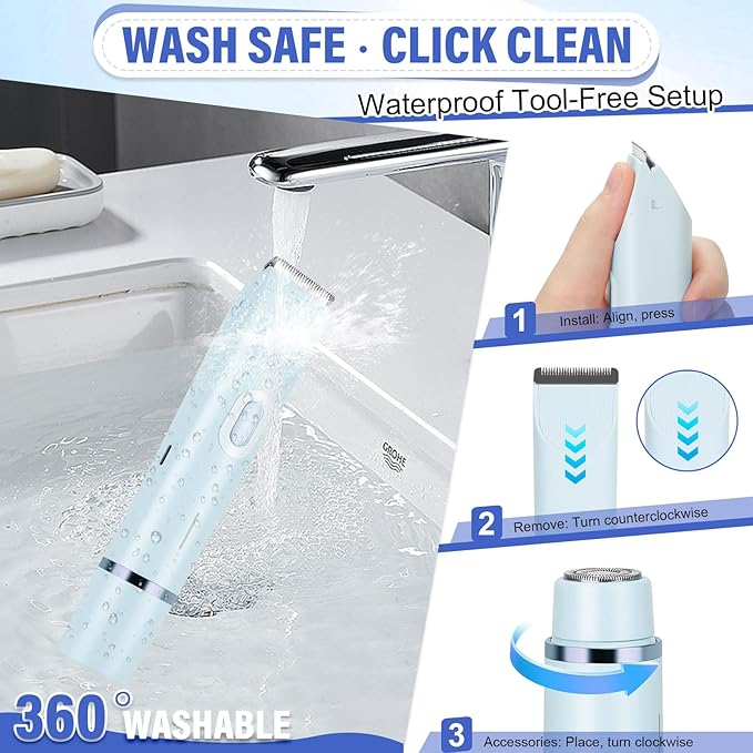 - 🌊IPX7 Waterproof - Wet and Dry - Whether it's a morning shower or a quick dry-after touch-up, the Women's 2-in-1 Shaver provides a safe and easy shaving experience anytime, anywhere. Perfect for travel, beach trips, and daily shaving needs
