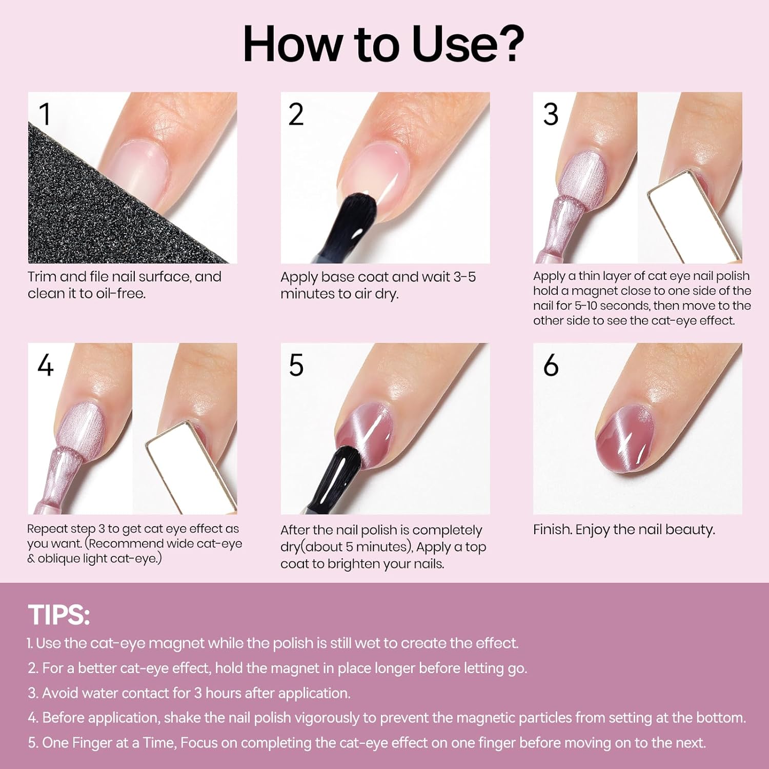 - Trendy Cat Eye Nail Polish: 1*15ml larger bottle nail polish, Pink-Purple. Perfect for daily wear, work, parties, trips, beaches, and any occasion where you want to add a pop of color to your look. Highly versatile and easy to apply, this elegant shade will steal the show wherever you go.
