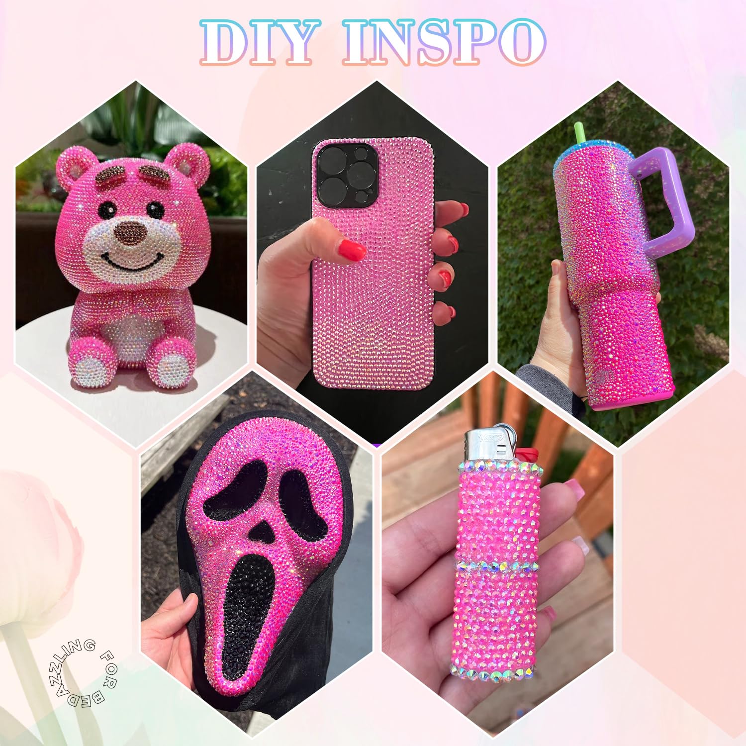 - PACKAGE CONTENT -- Include 1 box with 28 grids, featuring a variety of sizes, approx. 30000 pcs bling-out resin rhinestones (Hot Pink AB). 1 tweezers and 1 pickup pen are included for easily picking up of rhinestones. 3 B7000 glue for jewelry making