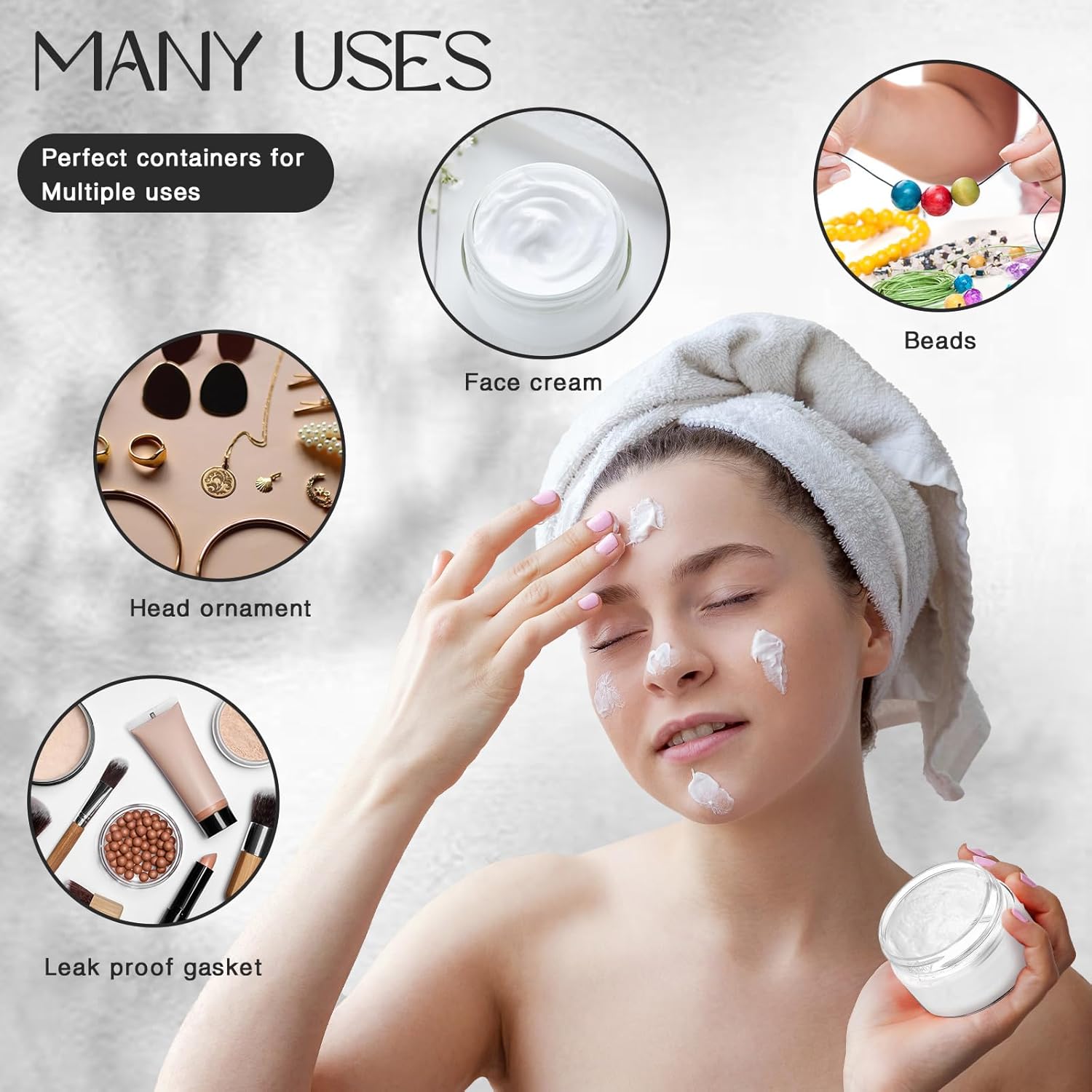 - Versatile and Portable: these 1 oz capacity cream containers have a wide range of applications, making them suitable for storing a wide range of items, including but not limited to beads, creams, lotions, pills, small and easily lost jewelry, small crafts, facial cleanser, body lotion, shower soap gifts, body moisturizer, hair moisturizer, seasonings, and spices; They are lightweight, compact, and easily fit in your pocket, purse, or luggage