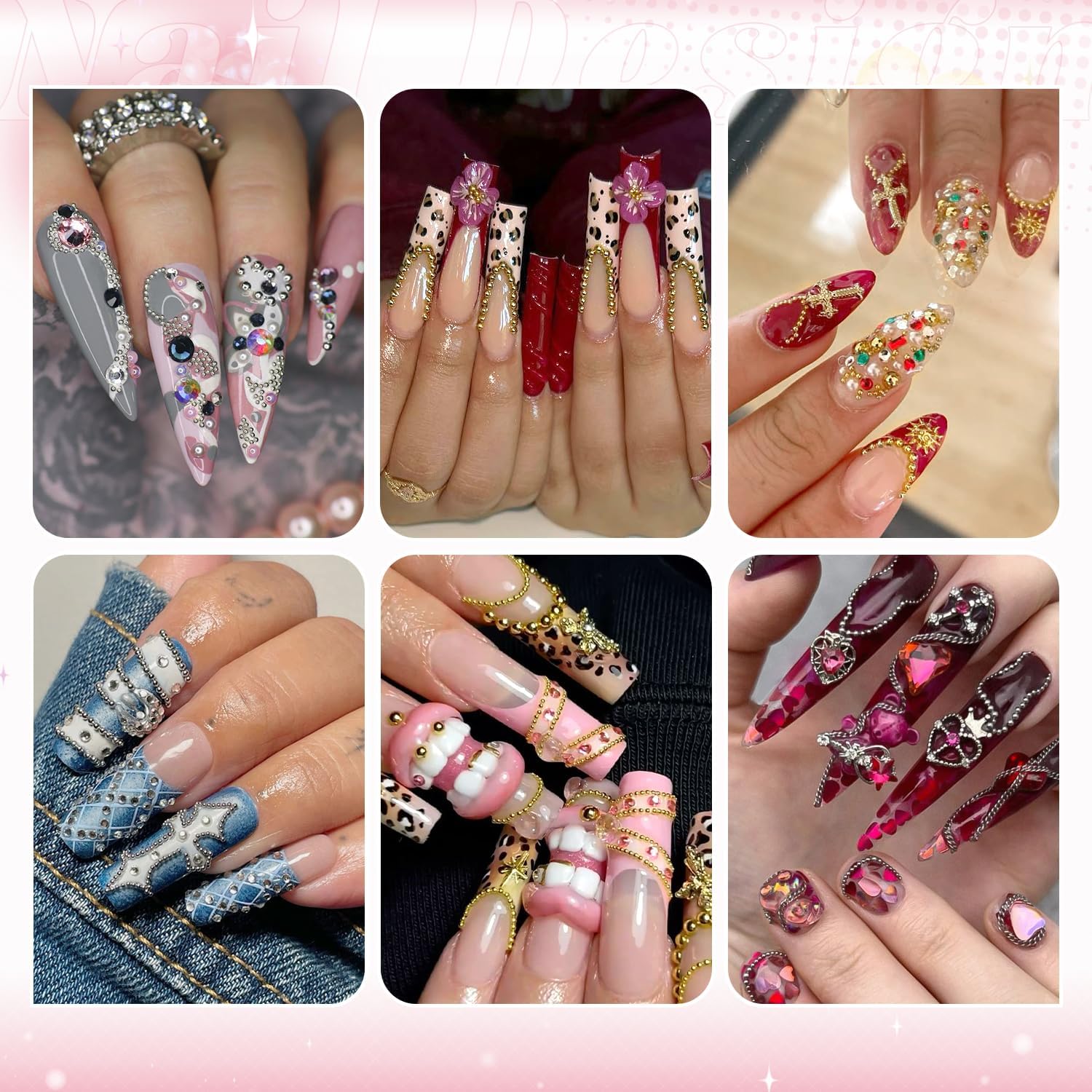 - Easy to Use -- These charms are easy to apply on natural or artificial nails by cleaning the nail surface, applying glue gel, then placing the charms with tools. Use a UV/LED lamp to cure for 60-90s. Do remember apply a top coat on them for long-lasting shine