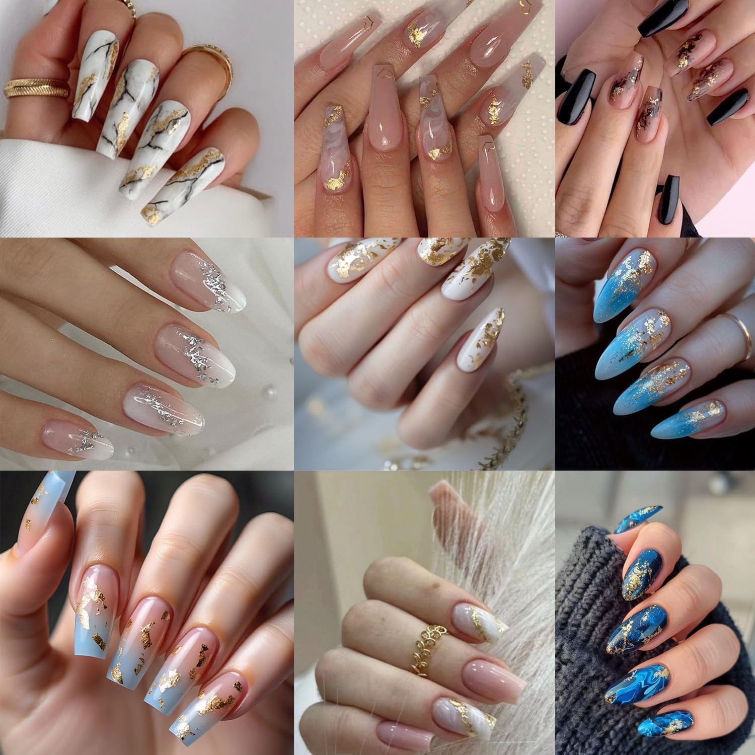 - Package: You will get 12 colors/12 bottles gold foil nail art sequins for acrylic nails supply,glittering sequins design and satisfy your rich imagination of nail DIY.