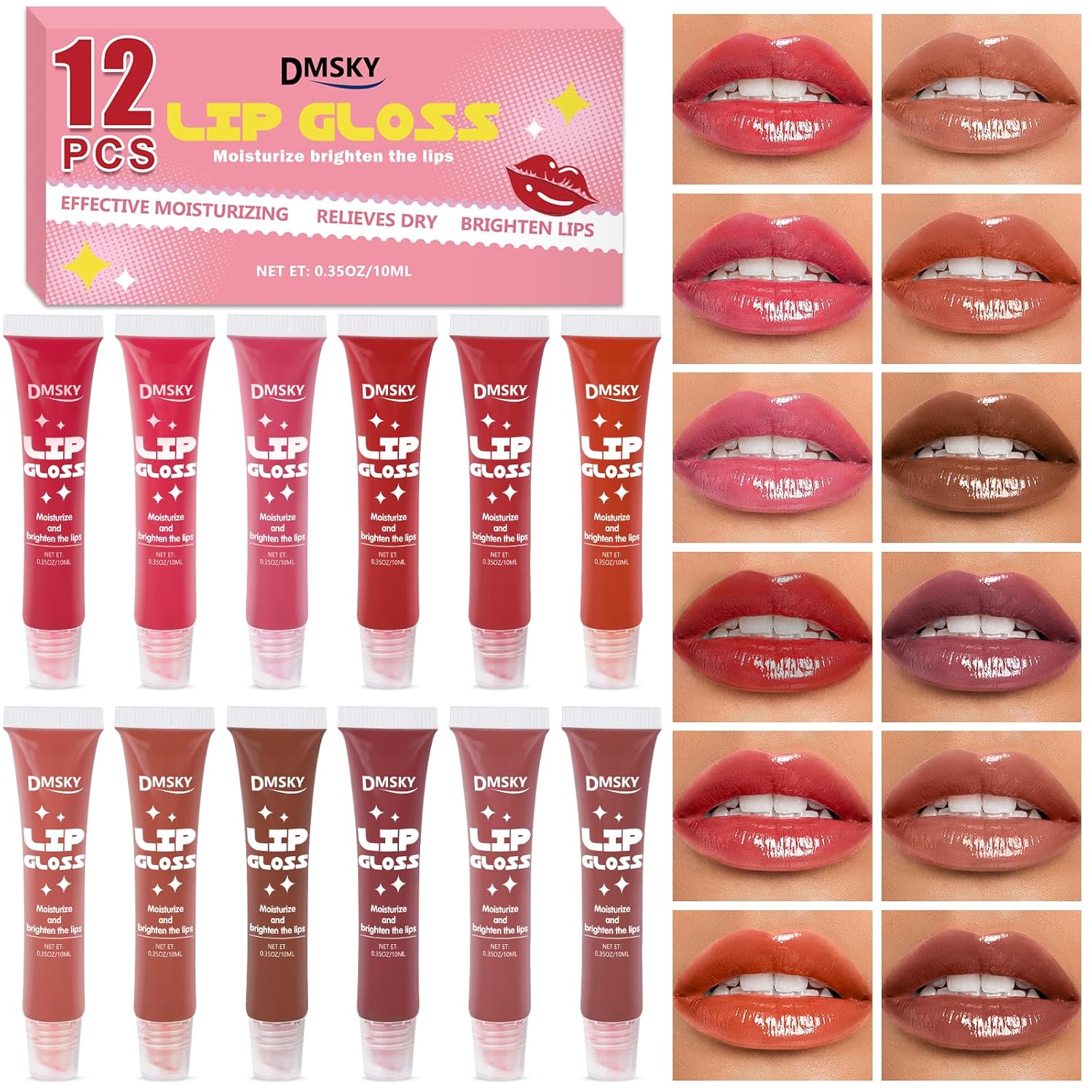 Dmsky 12 Pack Lip Gloss Set, 12 Colors Lip Oil for Dry Cracked Lips, Moisturizing Lip Balm Infused with Vitamin E for a Sheer Tint Of Color