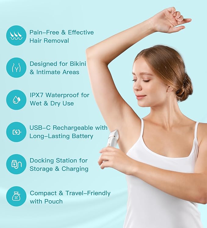 - Special Feature : 3IN1 Interchangeable Trimmer Heads Designed for Body & Intimate Areas, Docking Station for Storage & Charging, IPX7 Waterproof for Wet & Dry Use, Pain-Free & Effective Hair Removal, USB-C Rechargeable with Long Lasting Battery 3IN1 Interchangeable Trimmer Heads Designed for Body & Intimate Areas, Docking Station for Storage & Charging, IPX7 Waterproof for Wet & Dry Use, Pain-Free & Effectiv… See more