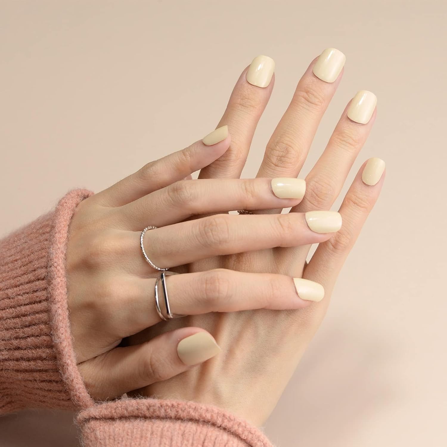 Nail Polish Strips, 32PCS Salon Quality Wraps, Long Lasting Gel Nail Stickers for Women Easy Apply& Remove (Nude Light Beige)