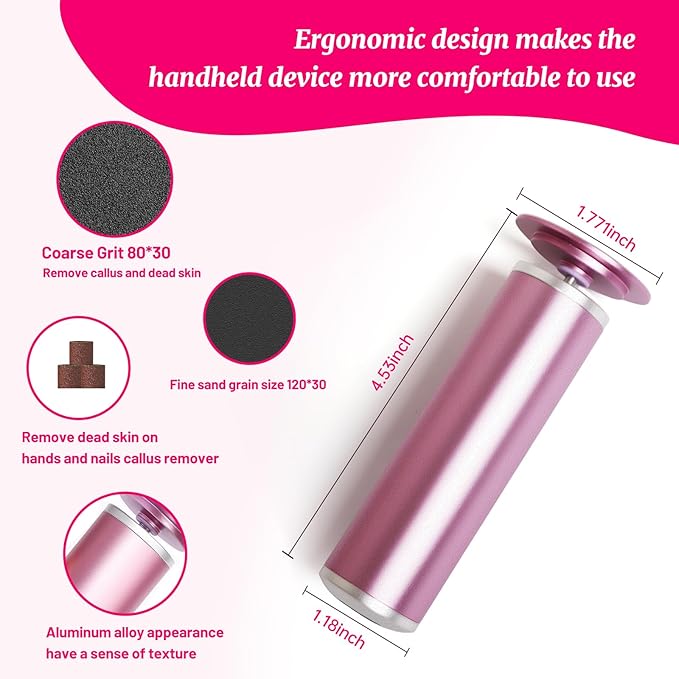 - 【Aluminum Alloy Structure】The foot grinder is made of sandblasted aluminum alloy, which has greater durability. The pink color is more aesthetically pleasing and is suitable as a gift for mothers, sisters, wives, girlfriends, and is particularly suitable for women who want to save time and effort in foot care! This electric nail file is a must-have tool for achieving salon-level results at home