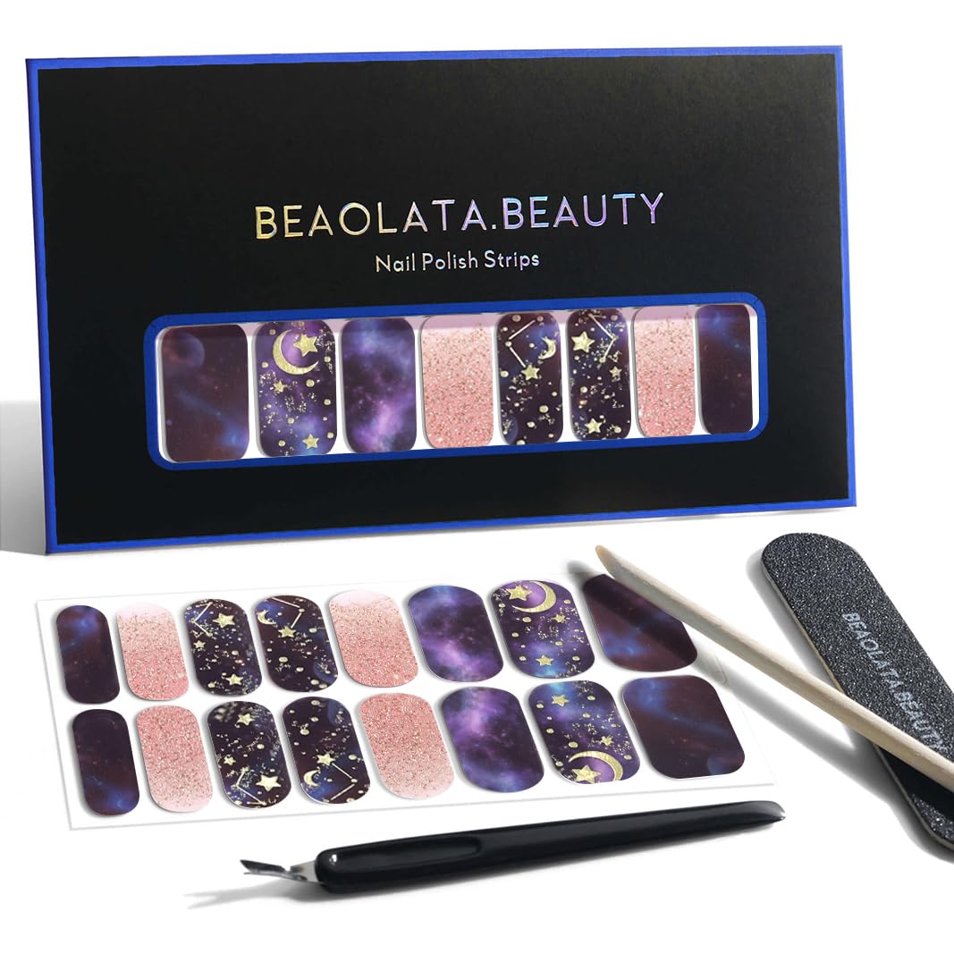 Nail Polish Strips, 32PCS Salon Quality Wraps, Long Lasting Gel Nail Stickers for Women Easy Apply& Remove (Stardust Purple Dream)